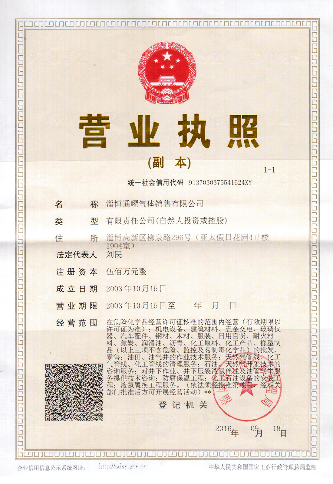 淄博通曜氣體銷售有限公司為用戶承諾: